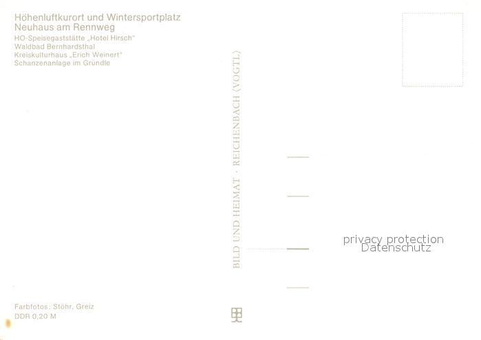 73123386 Neuhaus Rennweg HO Speisegaststaette Hotel Hirsch Waldbad Bernhardsthal Schanze postalisch nicht gelaufen Erhaltung siehe scans [KathaD81] KatCode: 11110016072013