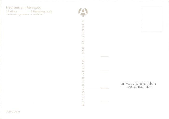 72518243 Neuhaus Rennweg Rathaus Kreisratsgebaeude Rennsteigbaude Waldbad Wappen postalisch nicht gelaufen Erhaltung siehe scans KatCode: 11110016072013
