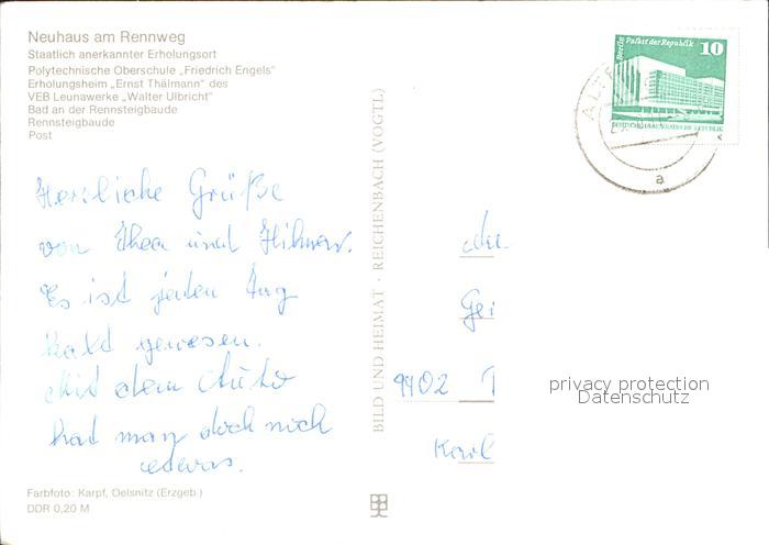 72062692 alte Postkarte Neuhaus Rennweg Schule Erholungsheim Ernst Thaelmann postalisch gelaufen Erhaltung siehe scans KatCode: 11110016072013