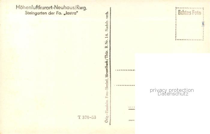 73750658 Neuhaus Rennweg Steingarten der Fa Jostra postalisch nicht gelaufen Erhaltung siehe scans [WerneD78] KatCode: 11110016072013