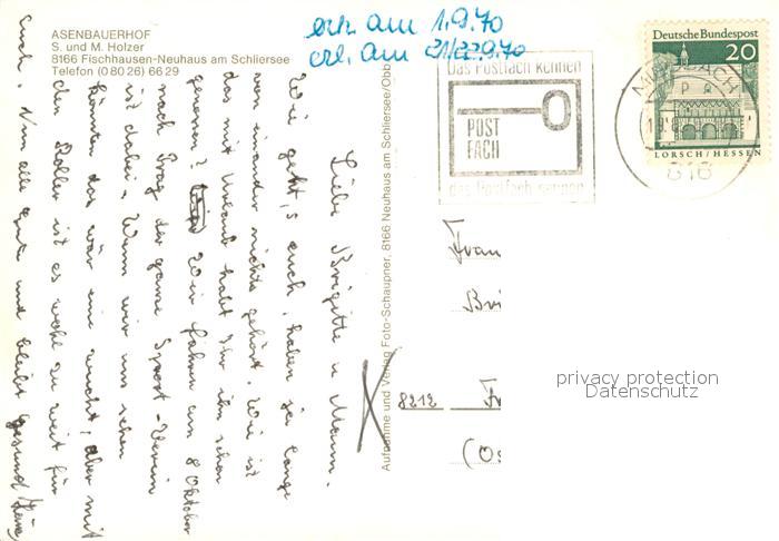 73650832 alte Postkarte Neuhaus Schliersee Asenbauerhof postalisch gelaufen Erhaltung siehe scans [WerneD78] KatCode: 11110009182131