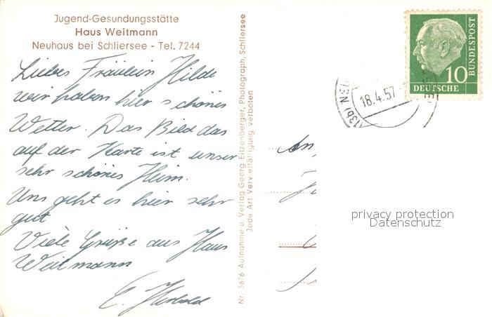 73541251 alte Postkarte Neuhaus Schliersee Jugendgesundungsstaette Haus Weitmann postalisch gelaufen Erhaltung siehe scans [KathaD81] KatCode: 11110009182131