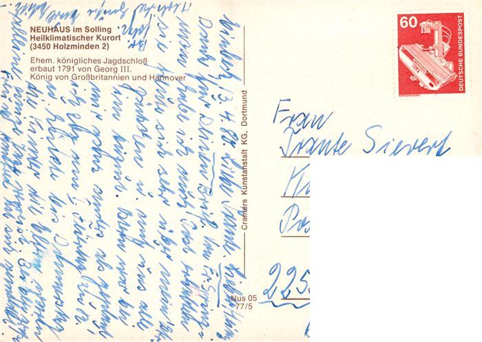 73944329 alte Postkarte Neuhaus Solling Ehemaliges koenigliches Jagdschloss postalisch gelaufen Erhaltung siehe scans [FriedD77] KatCode: 11110003255023