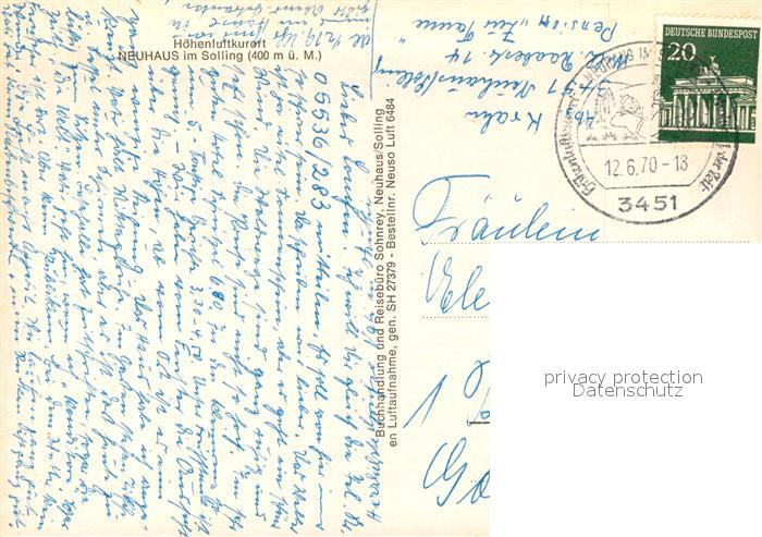 73540070 alte Postkarte Neuhaus Solling Fliegeraufnahme postalisch gelaufen Erhaltung siehe scans [WerneD78] KatCode: 11110003255023