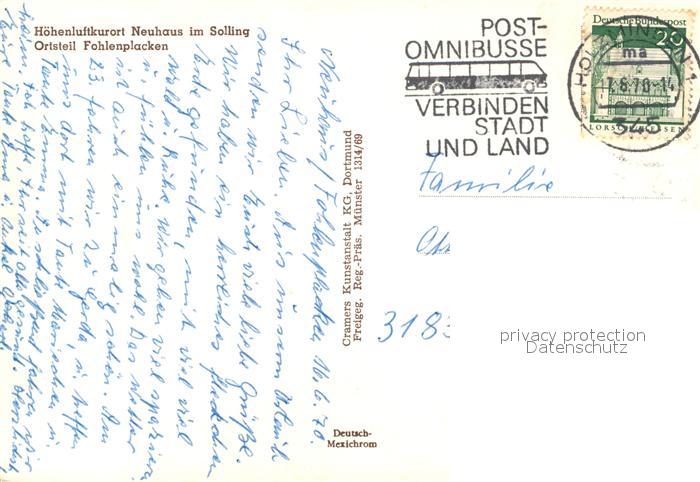 73050849 alte Postkarte Neuhaus Solling Fliegeraufnahme Fohlenplacken postalisch gelaufen Erhaltung siehe scans [KathaD81] KatCode: 11110003255023