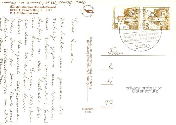 73118955 alte Postkarte Neuhaus Solling Fliegeraufnahme Fohlenplacken postalisch gelaufen Erhaltung siehe scans [LiesaD40] KatCode: 11110003255023