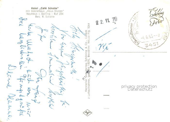 73668848 alte Postkarte Neuhaus Solling Fliegeraufnahme mit Hotel Cafe Schatte und Gaestehaus Haus Enzian postalisch gelaufen Erhaltung siehe scans [WerneD78] KatCode: 11110003255023