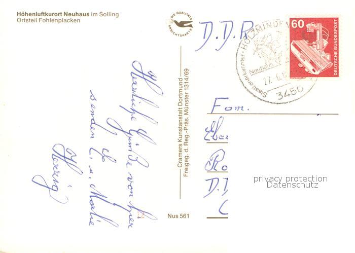 73714932 alte Postkarte Neuhaus Solling Fliegeraufnahme mit OT Fohlenplacken postalisch gelaufen Erhaltung siehe scans [WerneD78] KatCode: 11110003255023