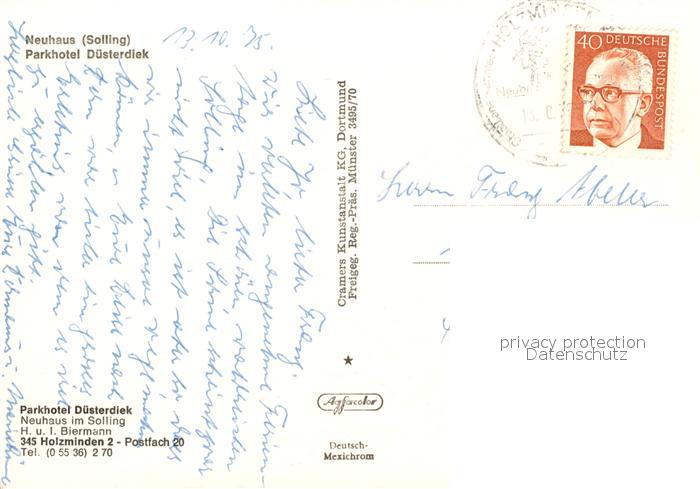 73031343 alte Postkarte Neuhaus Solling Fliegeraufnahme Parkhotel Duesterdiek postalisch gelaufen Erhaltung siehe scans [KathaD81] KatCode: 11110003255023
