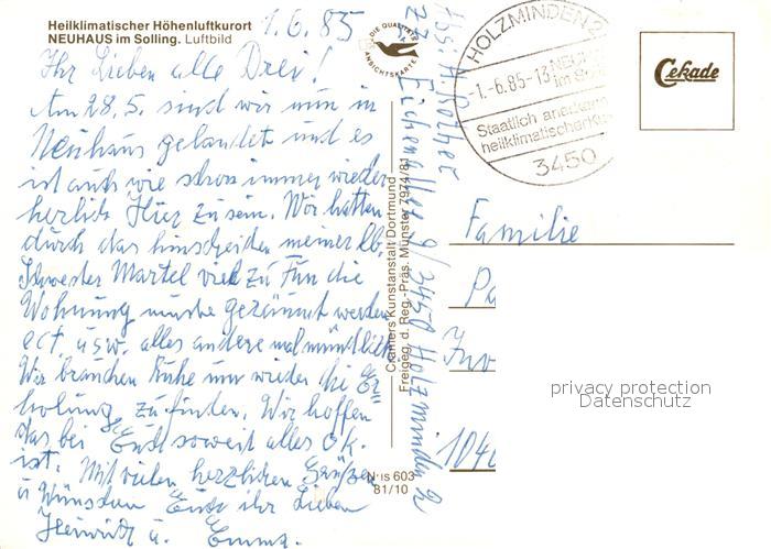 73169653 alte Postkarte Neuhaus Solling Heilklimatischer Hoehenluftkurort Fliegeraufnahme postalisch gelaufen Erhaltung siehe scans [FriedD77] KatCode: 11110003255023