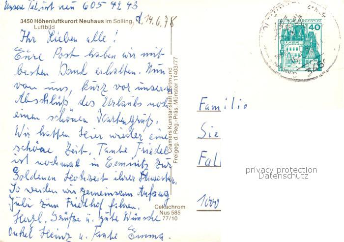 73084378 alte Postkarte Neuhaus Solling Hoehenluftkurort Fliegeraufnahme postalisch gelaufen Erhaltung siehe scans [FriedD77] KatCode: 11110003255023