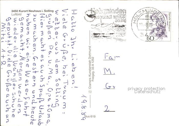 72066098 alte Postkarte Neuhaus Solling Hoehenluftkurort Fliegeraufnahme postalisch gelaufen Erhaltung siehe scans KatCode: 11110003255023