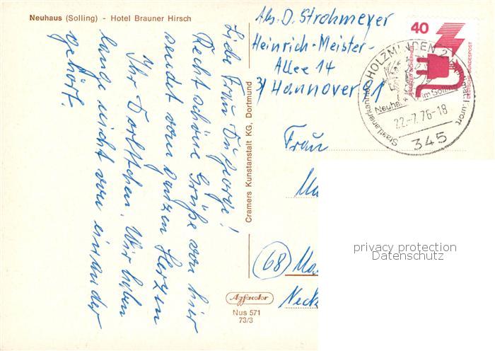 73870539 alte Postkarte Neuhaus Solling Hotel Brauner Hirsch postalisch gelaufen Erhaltung siehe scans [WerneD78] KatCode: 11110003255023