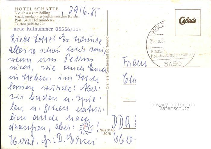 72610699 alte Postkarte Neuhaus Solling Hotel Schatte Gastraum Garten Hallenbad postalisch gelaufen Erhaltung siehe scans [AndreD76] KatCode: 11110003255023