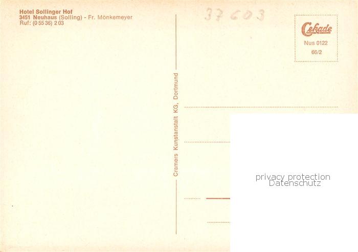 73763424 Neuhaus Solling Hotel Sollinger-Hof Aussenansicht Eingang m. Terrasse postalisch nicht gelaufen Erhaltung siehe scans [LiesaD40] KatCode: 11110003255023