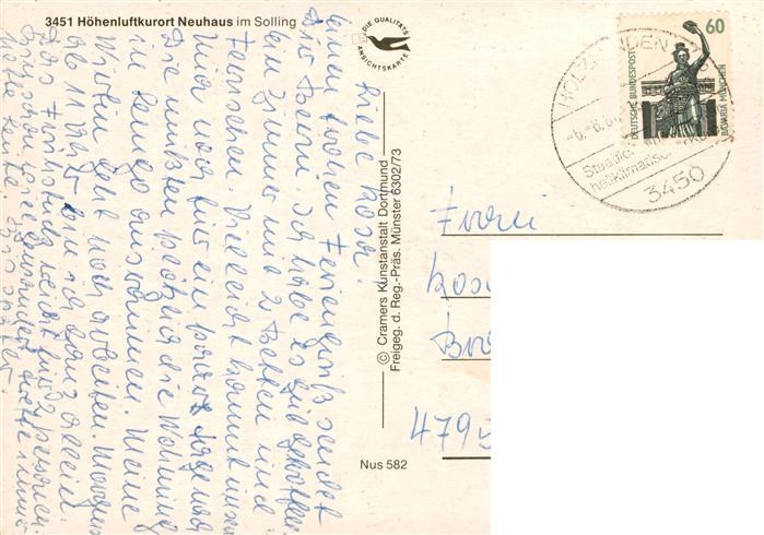 73944025 alte Postkarte Neuhaus Solling Panorama Hoehenluftkurort postalisch gelaufen Fliegeraufnahme Erhaltung siehe scans [FriedD77] KatCode: 11110003255023