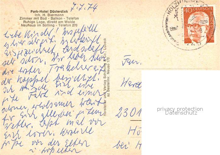 72803503 alte Postkarte Neuhaus Solling Park Hotel Duesterdiek postalisch gelaufen Erhaltung siehe scans [FriedD77] KatCode: 11110003255023