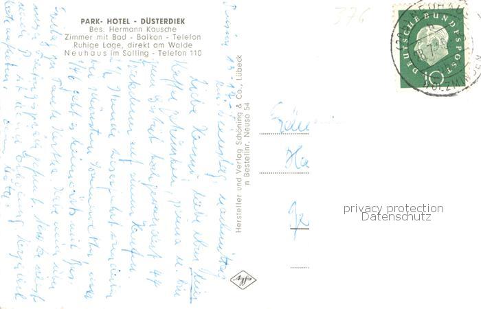 73762480 alte Postkarte Neuhaus Solling Park-Hotel-Duesterdiek Aussenansicht postalisch gelaufen Erhaltung siehe scans [LiesaD40] KatCode: 11110003255023
