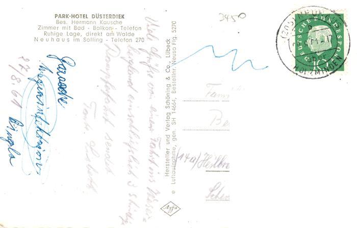 73900168 alte Postkarte Neuhaus Solling Park-Hotel Duesterdiek postalisch gelaufen Fliegeraufnahme Erhaltung siehe scans [FriedD77] KatCode: 11110003255023