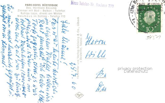 43366748 alte Postkarte Neuhaus Solling Parkhotel Duesterdiek Hoehenluftkurort postalisch gelaufen Erhaltung siehe scans [FriedD77] KatCode: 11110003255023