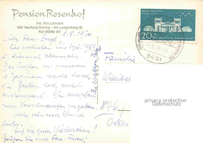 74085020 alte Postkarte Neuhaus Solling Pension Rosenhof postalisch gelaufen Erhaltung siehe scans [WerneD78] KatCode: 11110003255023