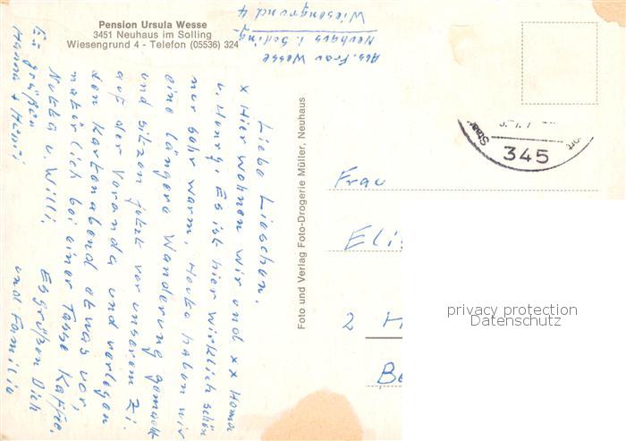 73844752 alte Postkarte Neuhaus Solling Pension Ursula Wesse postalisch gelaufen Erhaltung siehe scans [WerneD78] KatCode: 11110003255023