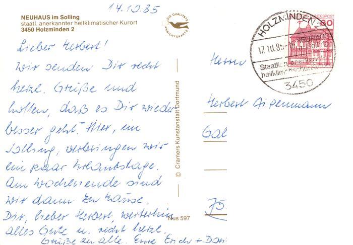 73944348 alte Postkarte Neuhaus Solling Teich Ortspartie Schloss Luftaufnahme Heilklimatischer Kurort postalisch gelaufen Erhaltung siehe scans [FriedD77] KatCode: 11110003255023