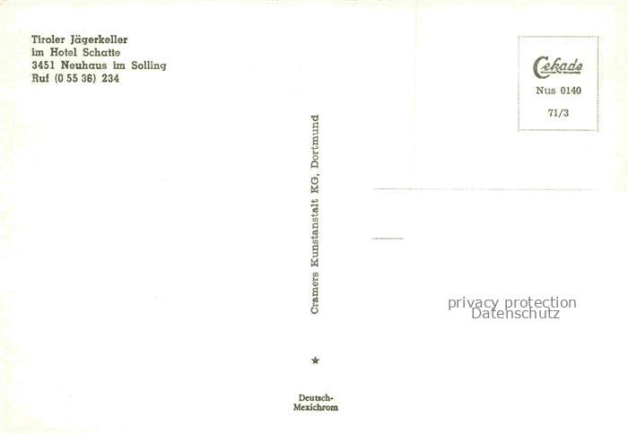 74043146 Neuhaus Solling Tiroler Jaegerkeller im Hotel Schotte postalisch nicht gelaufen Erhaltung siehe scans [WerneD78] KatCode: 11110003255023