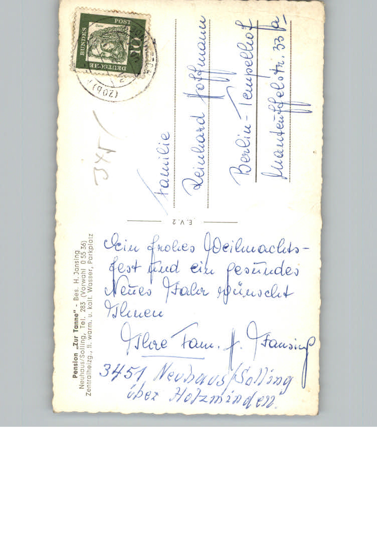 31130140 Neuhaus Solling Winter-Karte Pension Zur Tanne postalisch nicht gelaufen KatCode: 11110003255023
