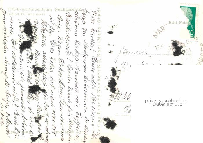72632471 alte Postkarte Neuhausen Erzgebirge FDGB Kulturzentrum Schloss Purschenstein postalisch gelaufen Erhaltung siehe scans [FriedD77] KatCode: 11110014177300