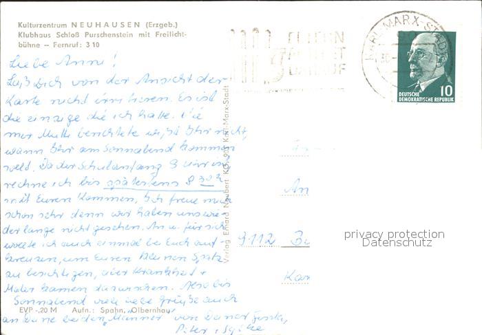 72329979 alte Postkarte Neuhausen Erzgebirge Klubhaus Schloss Purschenstein Freilichtbuehne postalisch gelaufen Erhaltung siehe scans KatCode: 11110014177300