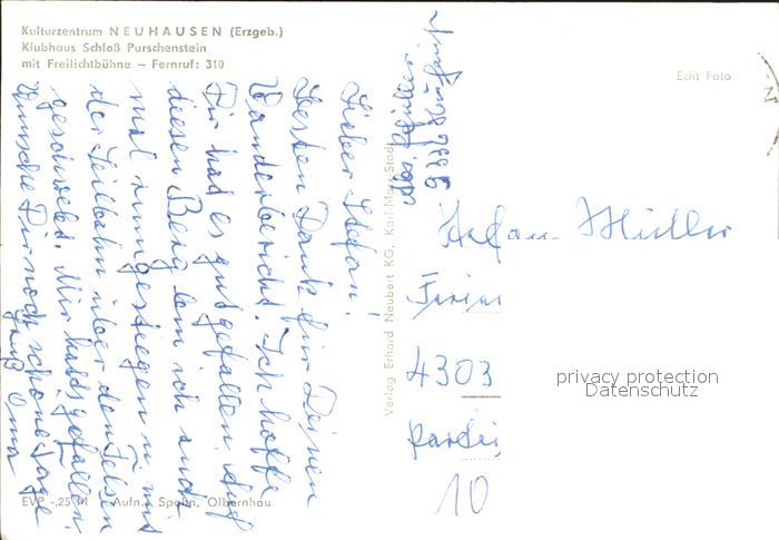 72048790 alte Postkarte Neuhausen Erzgebirge Klubhaus Schloss Purschenstein mit Freilichtbuehne postalisch gelaufen Erhaltung siehe scans KatCode: 11110014177300