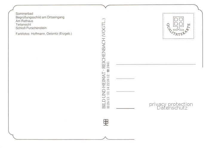73104819 Neuhausen Erzgebirge Sommerbad Schild am Ortseingang Rathaus Teilansicht Schloss Purschenstein postalisch nicht gelaufen Erhaltung siehe scans [WerneD78] KatCode: 11110014177300