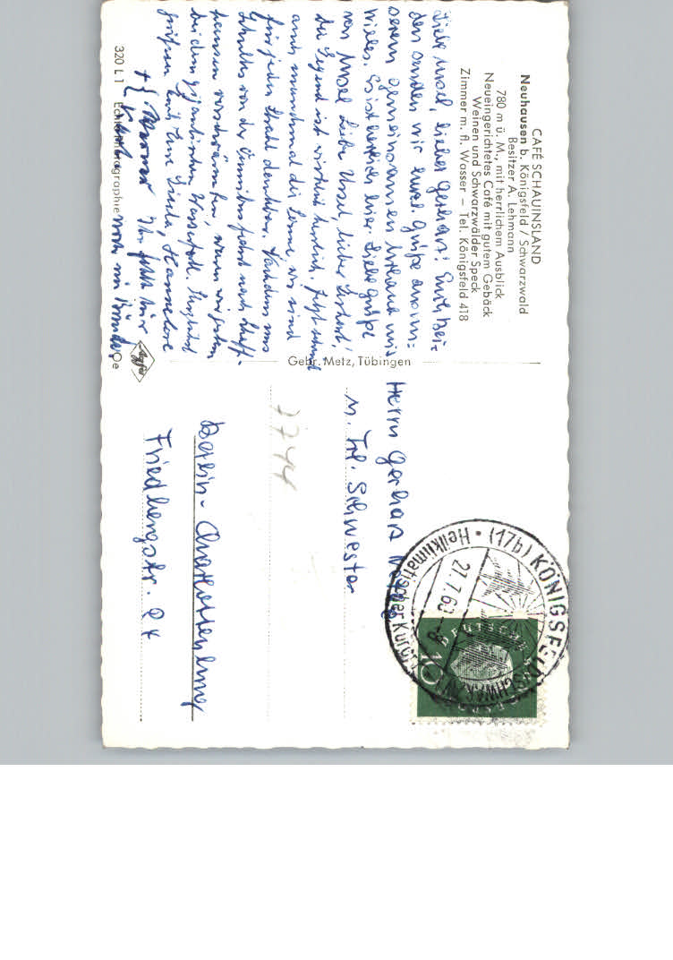 31152112 Neuhausen Koenigsfeld Schwarzwald Cafe Schauinsland postalisch nicht gelaufen KatCode: 11110008326031
