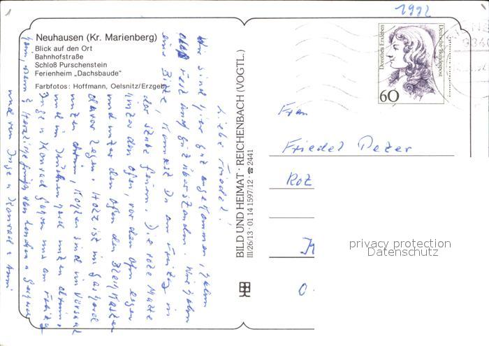 72522650 alte Postkarte Neuhausen Marienberg Panorama Bahnhofstr Schloss Purschenstein Ferienheim Dachsbaude postalisch gelaufen Erhaltung siehe scans KatCode: 11110014181260