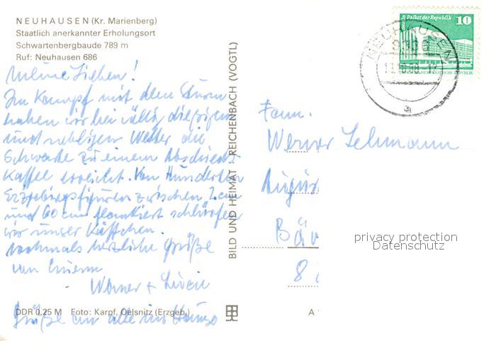 72967599 alte Postkarte Neuhausen Marienberg Schwartenbergbaude postalisch gelaufen Erhaltung siehe scans [NatalD47] KatCode: 11110014181260