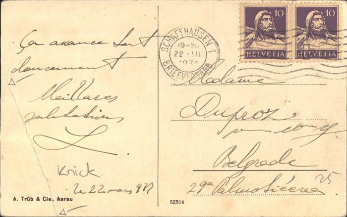 11383845 alte Postkarte Neuhausen Rheinfall Hotel Bellevue Alpenblick postalisch gelaufen Erhaltung mit Maengel KatCode: 11470160460372