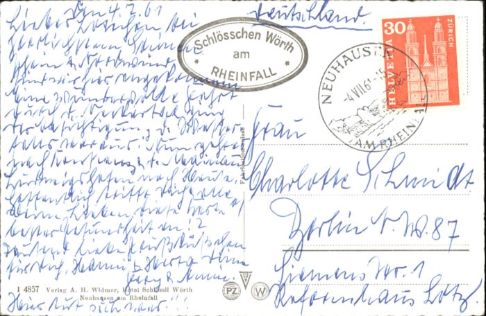 70823732 alte Postkarte Neuhausen SH Neuhausen [Stempelabschlag] Schloss Laufen Rheinfall postalisch gelaufen KatCode: 11470160460368