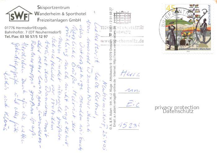74027613 alte Postkarte Neuhermsdorf Hermsdorf Osterzgebirge Skisportzentrum Wanderheim und Sporthotel Freizeitanlagen Restaurant postalisch gelaufen Erhaltung siehe scans [FriedD77] KatCode: 11110014290200