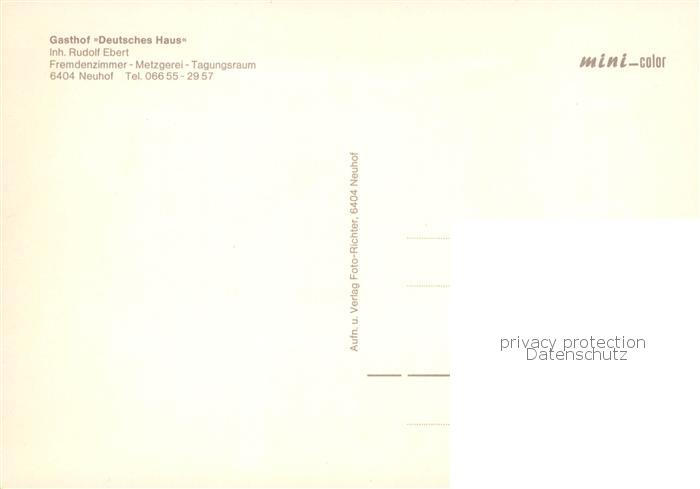 73856239 Neuhof Fulda Gasthaus Deutsches Haus Restaurant postalisch nicht gelaufen Erhaltung siehe scans [FriedD77] KatCode: 11110006631018