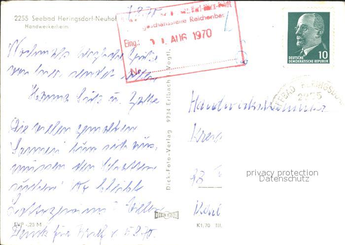 72350921 alte Postkarte Neuhof Heringsdorf Handwerkerheim Kulturhaus Strand Moewen postalisch gelaufen Erhaltung siehe scans KatCode: 11110013059112