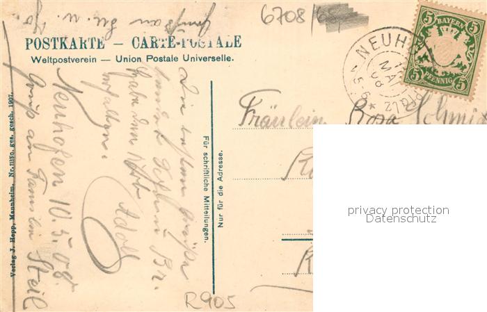 33274286 alte Postkarte Neuhofen Pfalz Villa Wernz Hauptstrasse Schulhaus Muehle am Rehbach postalisch gelaufen Erhaltung siehe scans [NatalD47] KatCode: 11110007338020