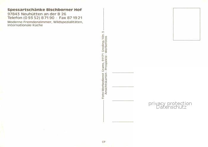 72783936 Neuhuetten Unterfranken Spessartschaenke Bischborner Hof postalisch nicht gelaufen Erhaltung siehe scans [FriedD77] KatCode: 11110009677165