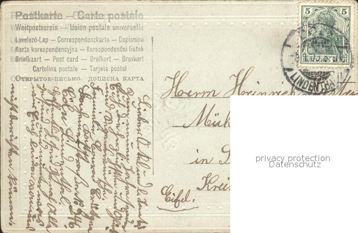 alte Postkarte Neujahr Rosen postalisch gelaufen Prägedruck Erhaltung siehe scans