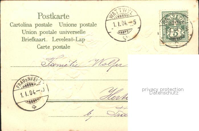 alte Postkarte Neujahr Rosen postalisch gelaufen Prägedruck Erhaltung siehe scans