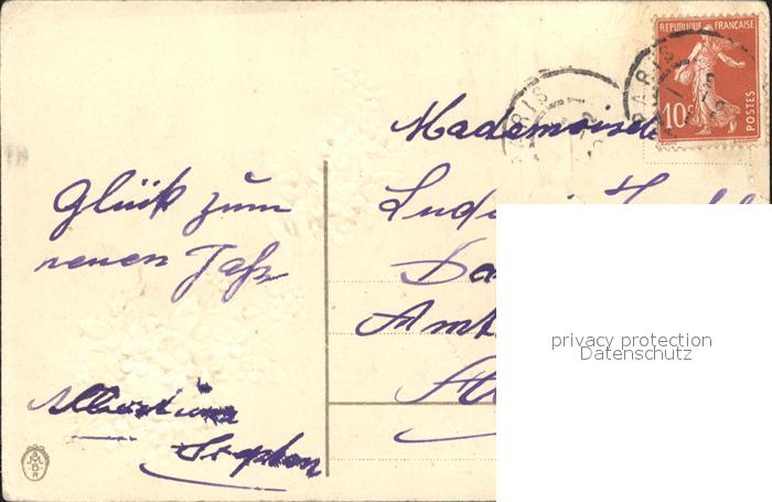 alte Postkarte Neujahr Vergissmeinnicht Litho postalisch gelaufen Erhaltung siehe scans