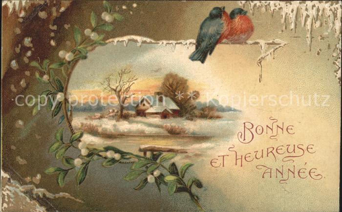 alte Postkarte Neujahr Voegel Mistel Litho postalisch gelaufen Erhaltung siehe scans