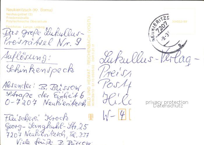 72529165 alte Postkarte Neukieritzsch Neubaugebiet Friedensstr Polytech Oberschule postalisch gelaufen Erhaltung siehe scans KatCode: 11110014379530