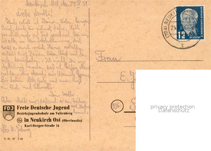 73749788 alte Postkarte Neukirch Lausitz Bezirksjugendschule am Valtenberg der FDJ postalisch gelaufen Erhaltung siehe scans [WerneD78] KatCode: 11110014272250