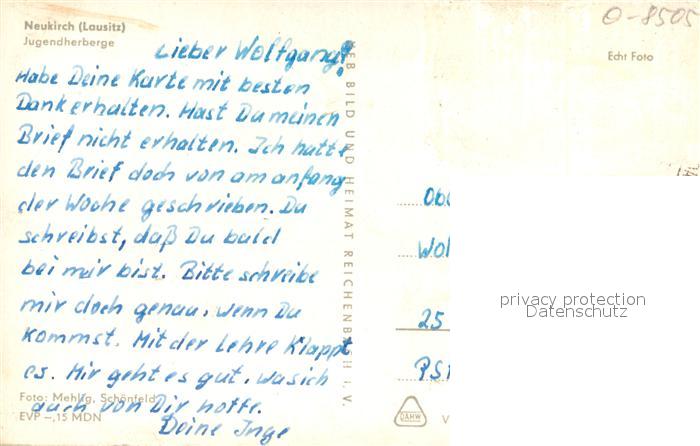 43361176 alte Postkarte Neukirch Lausitz Jugendherberge postalisch gelaufen Erhaltung siehe scans [WerneD78] KatCode: 11110014272250
